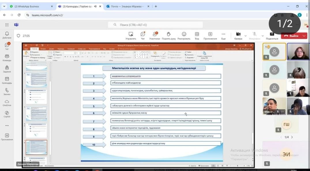 Вебинар тәрбие орынбасарларына тәжірибе алмасу және білім беру ұйымдарындағы құқықбұзушылықтың алдын алуға бағытталған жұмысты жетілдіру бойынша жаңа идеялар алуға мүмкіндік берді.